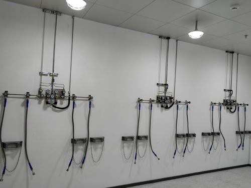 8.氣瓶間內的的氣體設備與各種壓控制器之間分為SS316L低壓黑色金屬橡膠管相連無滲入。低壓橡膠管為柔軟性橡膠管,以以確保相連的方面性。并自導保護鋼纜,預防措施極其事情下,設備閥損害等的現象面臨的低壓“抽鞭”特大事故。各種壓控制器與通道的相連模式為雙環卡套。